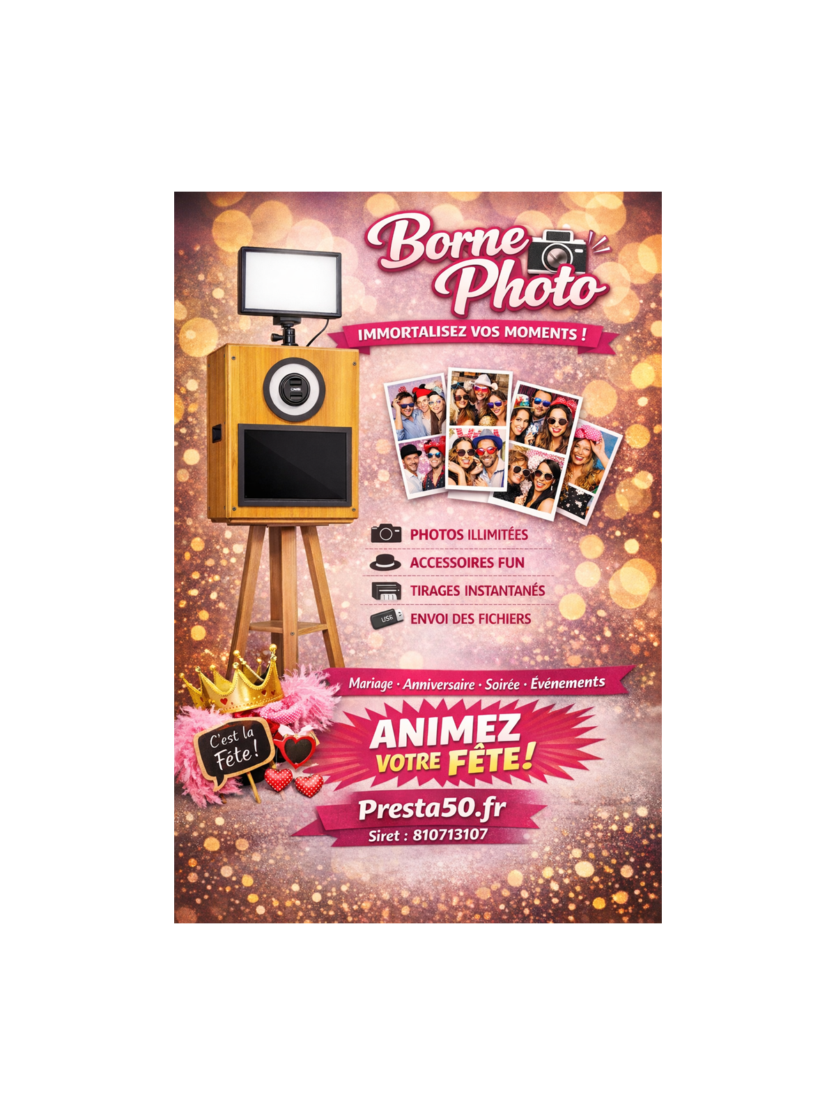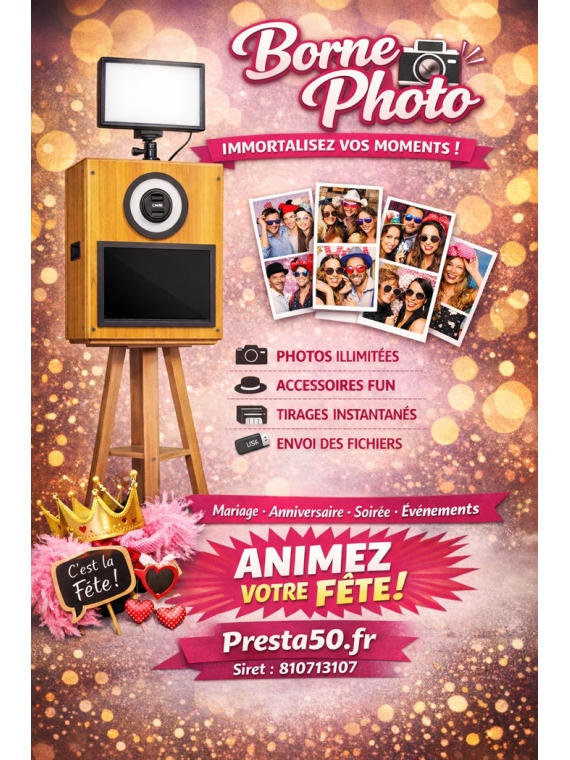 Animez votre événement et créez des souvenirs inoubliables avec notre borne photo Photobooth50 !